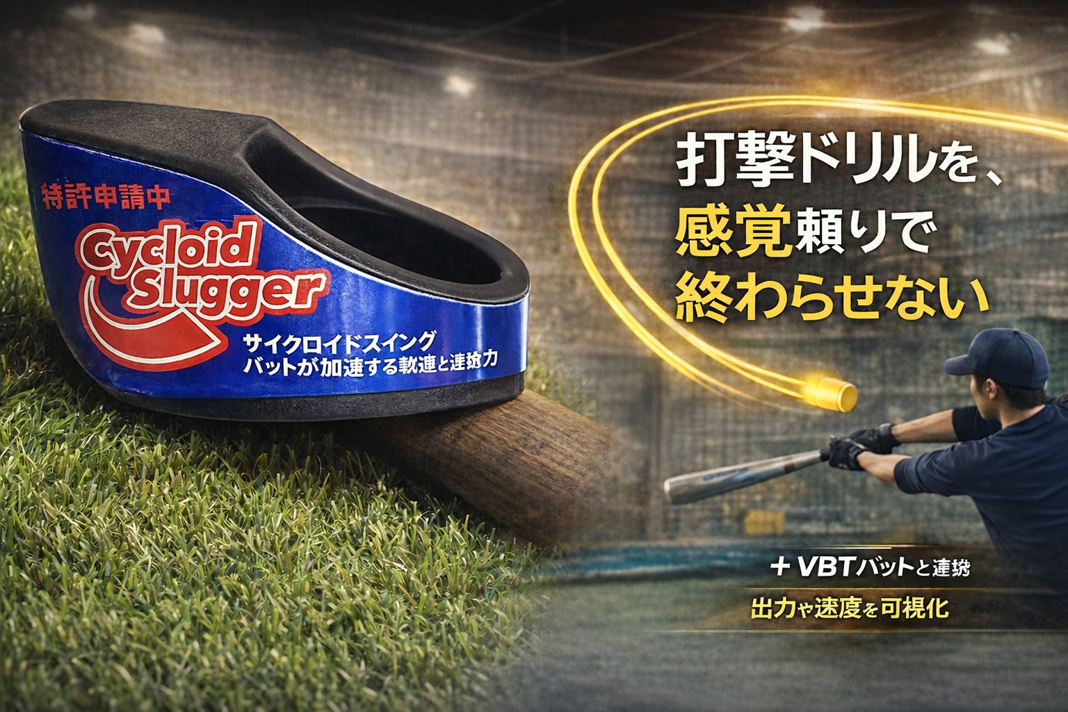 Cycloid Sluggerは、バットに装着して使う打撃トレーニングツールです。 打撃フォームをただ真似するだけでなく、練習時にどこを意識するかを整理しやすくなります。